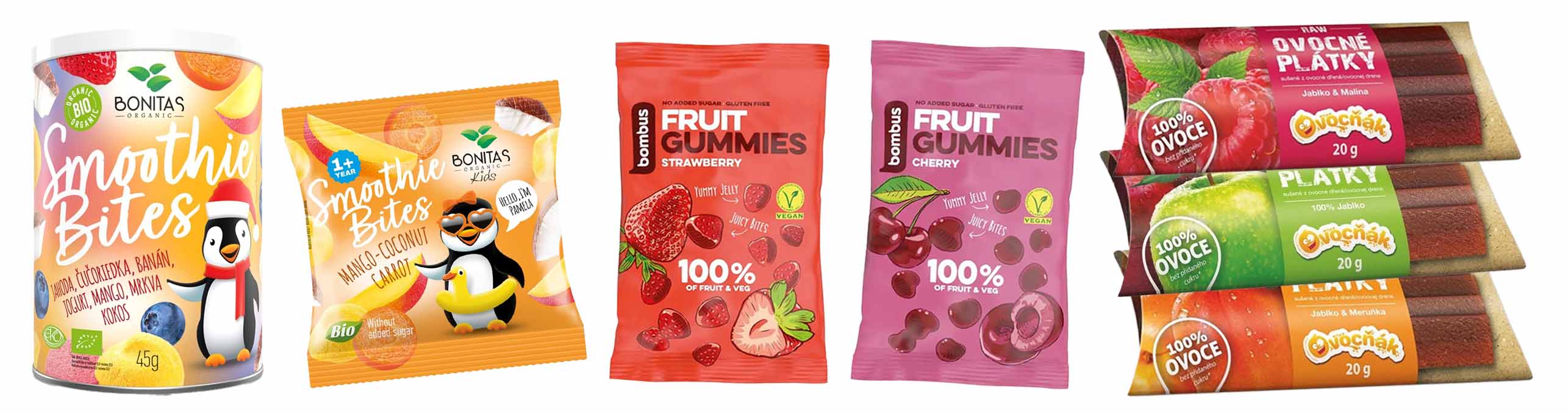 - Bonitas BIO Smoothie mix mrazom sušeného ovocia, zeleniny a jogurtu (45 g) – krémová smoothie zmes s jemnou chuťou ovocia, zeleniny a jogurtu