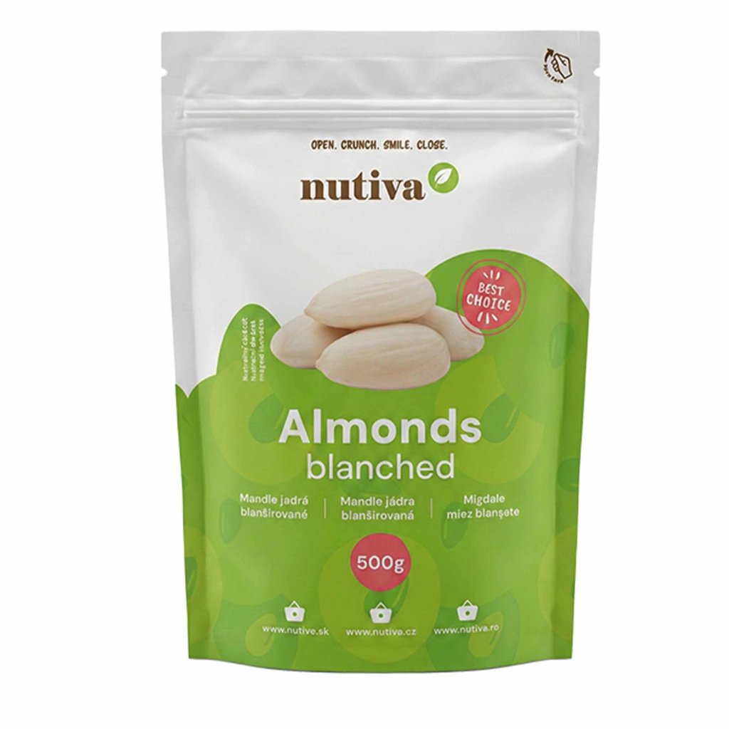 NUTIVA Mandle lúpané 500g sú definíciou kulinárskej elegancie. Naše mandle sme starostlivo vybrali a šetrným blanšírovaním zbavili nepoddajnej hnedej šupky. Výsledkom sú snehobiele jadrá, ktoré sú jemnejšie, lahodnejšie a výrazne sladšie než klasické mandle. Táto čistá forma ti zaručí dokonalý chuťový zážitok bez horkastej dochuti.