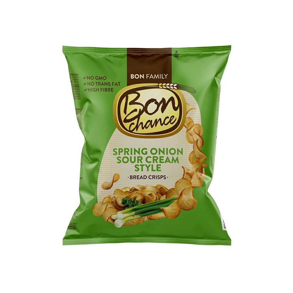 Luxusné Bon Chance chlebové chipsy sú pripravené z pšenično-žitného chleba a dochutené jarnou cibuľkou so zakysanou smotanou. Tenké, krehké a veľmi chrumkavé – ideálne ako ľahké občerstvenie doma aj na cestách.
