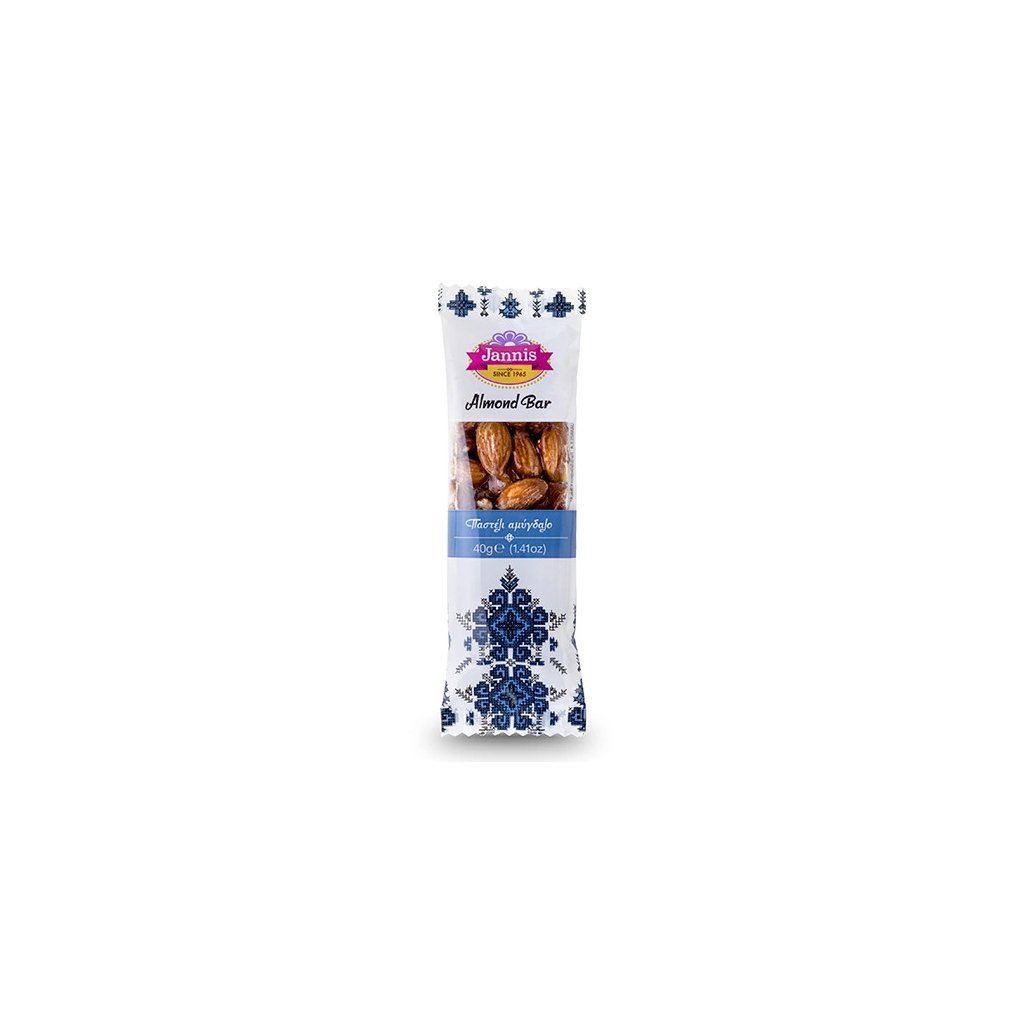 Grécka mandľová tyčinka JANNIS je sladká a chrumkavá dobrota, ktorá spája jednoduchosť mandlí s jemným medom a cukrom. Vďaka vysokému podielu mandlí (68 %) má plnú orieškovú chuť a prirodzene zasýti.